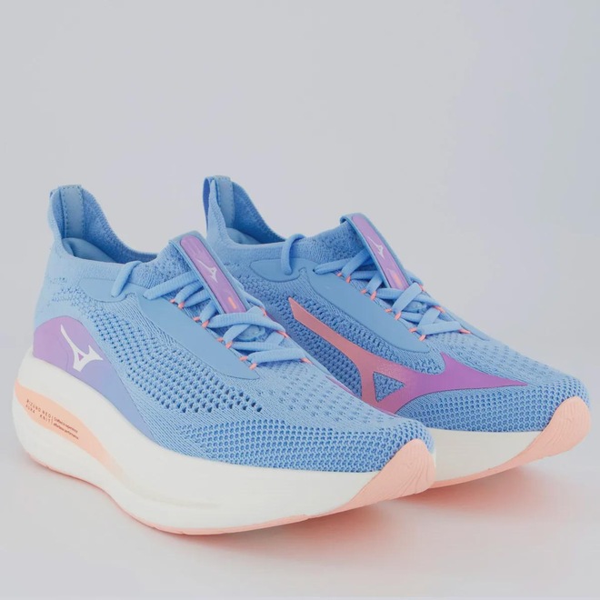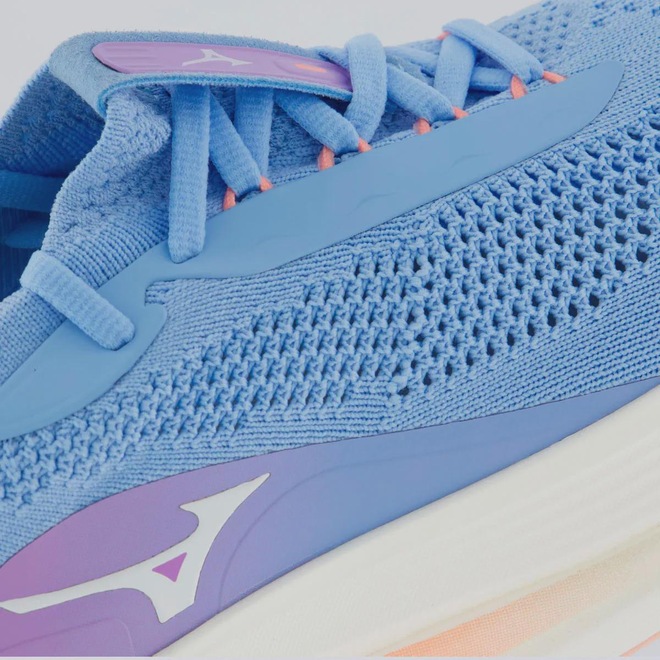 Tecnologias Mizuno Enerzy: Entressola: proporciona amortecimento mais macio e maior retorno de energia a cada passada Composição cabedal (parte superior): Têxtil com parte em sintético Palmilha: Em EVA forrado e removível Solado: Borracha antiderrapante, colado Altura da sola: 6cm Forro: Material têxtil respirável Entressola: EVA leve e macio Cor predominante: Azul claro Indicado para: Corrida Lingueta: Integrada Gênero: Feminino Origem: Nacional Ajuste: Cadarço Peso aproximado: 430g o par n° 37