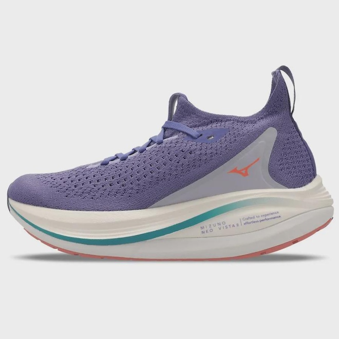 O Mizuno Neo Vista 2 chega com cabedal em knit respirável, oferecendo ajuste firme e agradável para seus treinos.