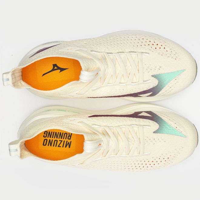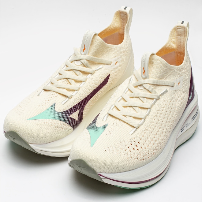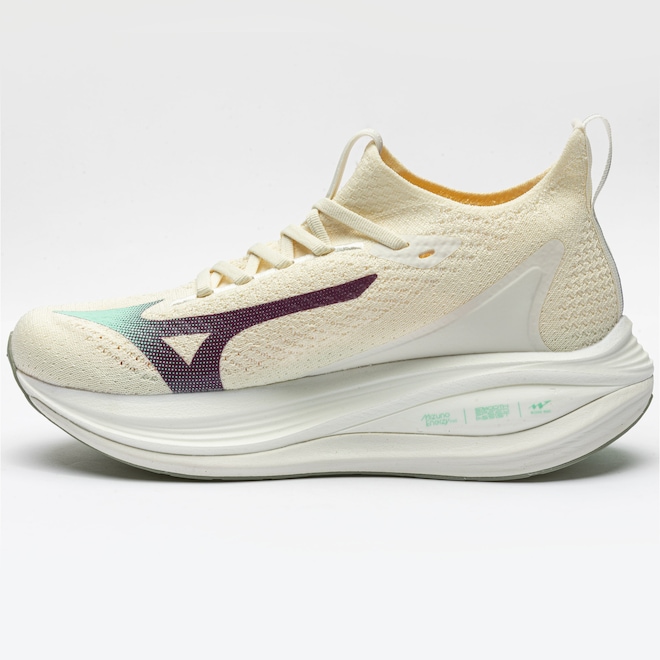 A entressola com tecnologia Mizuno Enerzy NXT proporciona máximo retorno de energia e amortecimento, enquanto a placa Wave em fibra de vidro garante estabilidade nas transições.