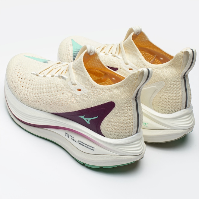 O Mizuno Neo Vista 2 chega com cabedal em knit respirável, oferecendo ajuste firme e agradável para seus treinos.