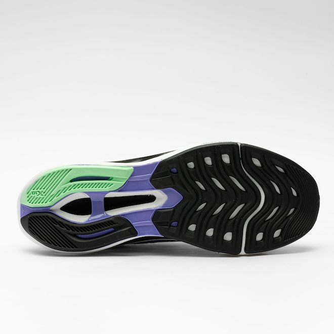 Para completar, o solado em X10, borracha de alta resistência à abrasão, proporciona durabilidade extra, e o conjunto de tecnologias como Critical Foam, placa de carbono e placa de Pebax assegura uma transição suave e potente.