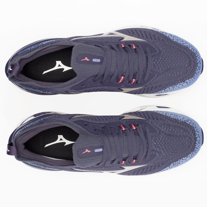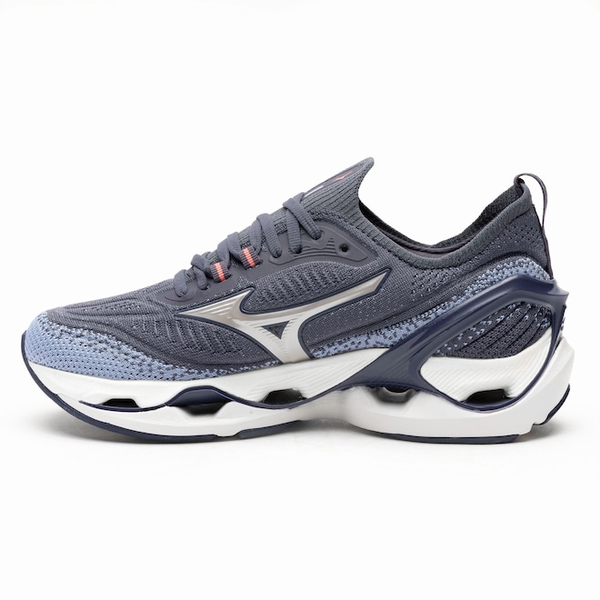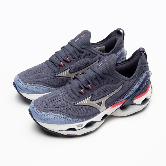 Mizuno Wave®: Nova geração da tecnologia Wave, que garante a efetividade inicial de amortecimento do tênis durante 500 km de uso, garantindo 100% da performance do sistema e proporcionando maior dissipação de impactos.