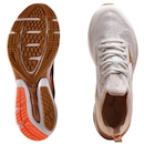 O cabedal em knit oferece alta respirabilidade e flexibilidade, adaptando-se ao formato dos pés para um ajuste mais anatômico. Essa construção favorece ventilação interna adequada e liberdade de movimento, contribuindo para o conforto em treinos ou uso prolongado.