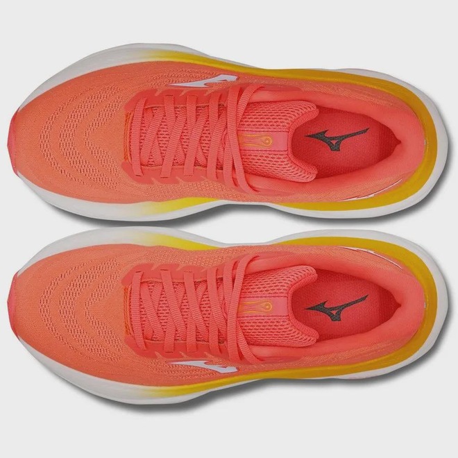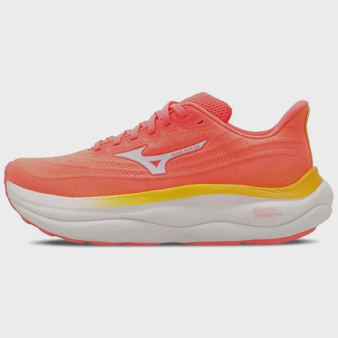 O Wave Sky 9 foi desenvolvido com a maior altura de entressola da história da Mizuno, oferecendo uma experiência de amortecimento excepcional com um design de entressola macio e confortável. O cabedal apresenta um design contornado de forma orgânica que flui da frente para trás, evocando a sensação de cortar o vento, ao mesmo tempo em que mantém uma aparência minimalista. O solado incorpora um design circular que lembra ventosas, garantindo uma aderência segura ao solo e proporcionando uma experiência de corrida confortável.