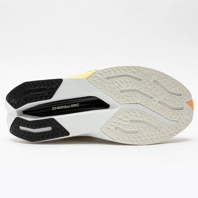A entressola com tecnologia FuelCell e placa de carbono Energy Arc entrega alta resposta e propulsão, com altura de 40mm no calcanhar e 34mm na frente – resultando em drop de 6mm.