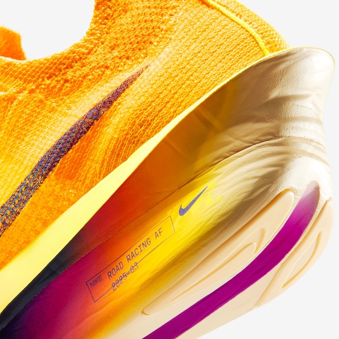 - O Alphafly 3 é o Alphafly mais leve de todos os tempos, com uma placa de fibra de carbono um pouco mais larga para maior estabilidade, uma entressola de espuma ZoomX totalmente conectada para transições mais suaves e uma parte de cima toda nova em Atomknit, projetada para melhor contenção multidirecional e respirabilidade.