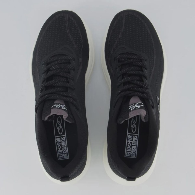 Tecnologias EVAsense: EVA macio e expandido que proporciona mais conforto, flexibilidade e leveza à pisada. Composição cabedal (parte superior): Confeccionado em têxtil Palmilha: Em EVA e removível; facilita na higienização Forro: Revestimento respirável Solado: EVA antiderrapante, colado Altura da entressola: 4cm Indicado para: Corrida Cor predominante: Preta Lingueta: Macia e flexível Gênero: Feminino Origem: Nacional Ajuste: Cadarço Peso aproximado: 370g o par n° 37