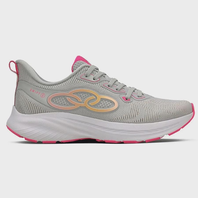 Pensado exclusivamente para o público feminino, o Tênis Olympikus Swift 5 chega na sua quinta edição. Ideal para corridas leves, ele é a união entre leveza e flexibilidade. Entressola desenvolvida com a tecnologia de amortecimento Evasense, em um único bloco de EVA que proporciona leveza, maciez e flexibilidade nas passadas. Solado com tecnologia Gripper, altamente durável, resistente e antiderrapante. Palmilha em EVA que oferece maior respirabilidade e um encaixe perfeito para os pés. Gáspea produzida com tecido giro inglês, uma tecnologia inovadora e flexível, que conta com fios de TPU e TPE para oferecer maior resistência, leveza e um toque macio. Logo em TPU com detalhes de pintura e laminado produzidos com a tecnologia high frequency, um material diferenciado de espessura mínima. Lingueta em tecido duplo frontura + espuma e interior produzido em poliéster, oferecendo conforto ao caminhar. Atacador em poliéster texturizado. Puxador traseiro em fita bicolor auxilia o calce.