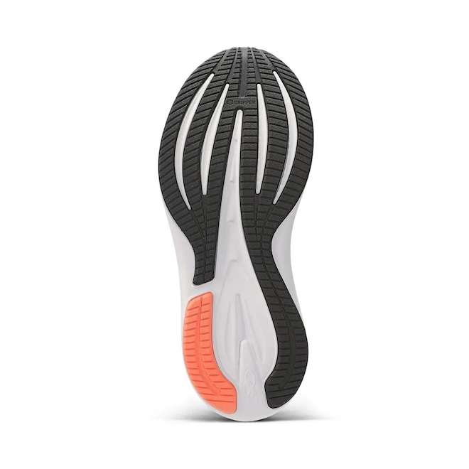 Solado Gripper: A base do tênis conta com a borracha antiderrapante Gripper, de alta resistência, posicionada em áreas estratégicas para garantir aderência e segurança em diferentes superfícies urbanas.