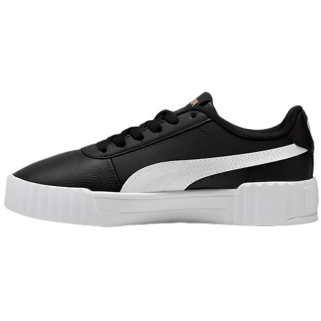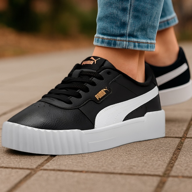 O tênis Puma Carina 3.0 é uma versão moderna de um modelo clássico dos anos 80. Ele tem um visual retrô com toques atuais, inspirado nas praias da Califórnia. É ideal para looks urbanos, oferecendo estilo e conforto.Possui cabedal (parte superior) em couro premium e materiais sintéticos, com perfurações que ajudam na ventilação e mantêm os pés frescos. A palmilha é do tipo SoftFoam+, com espuma de dupla densidade e acolchoamento extra no calcanhar, garantindo ótimo amortecimento e conforto ao caminhar. A sola de borracha é robusta, com entalhes e revestimento antiderrapante, o que proporciona durabilidade e boa aderência em ambientes urbanos.