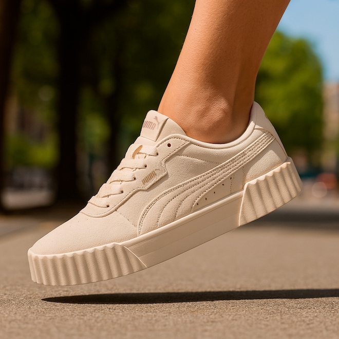 O Tênis Puma Carina 3.0 SD BDP é a escolha ideal para quem busca um visual urbano com toque retrô e conforto superior. Inspirado no estilo californiano dos anos 80, este modelo combina design moderno com materiais de alta qualidade, oferecendo durabilidade e estilo em cada passo. Seu cabedal em camurça proporciona um acabamento sofisticado, enquanto a palmilha SoftFoam+ garante amortecimento e conforto durante todo o dia. A sola de borracha antiderrapante assegura tração e segurança em diversas superfícies, tornando-o perfeito para o uso diário.Características: