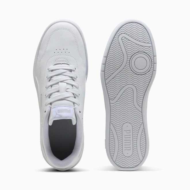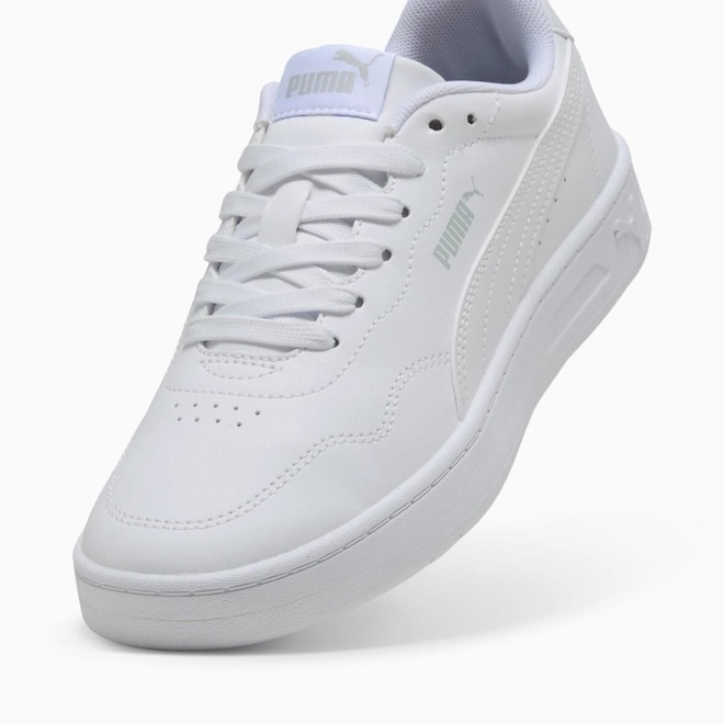 O interior acolchoado, especialmente no calcanhar, e a palmilha forrada proporcionam conforto prolongado, enquanto a lingueta fina facilita o ajuste. O fechamento por cadarço assegura um encaixe firme e personalizado, com o logo Puma de forma discreta no cabedal, elevando o visual clean e contemporâneo.- Cabedal em material sintético resistente e de fácil manutenção