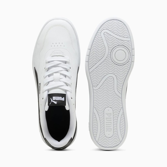 O interior acolchoado, especialmente no calcanhar, e a palmilha forrada proporcionam conforto prolongado, enquanto a lingueta fina facilita o ajuste. O fechamento por cadarço assegura um encaixe firme e personalizado, com o logo Puma de forma discreta no cabedal, elevando o visual clean e contemporâneo.- Cabedal em material sintético resistente e de fácil manutenção