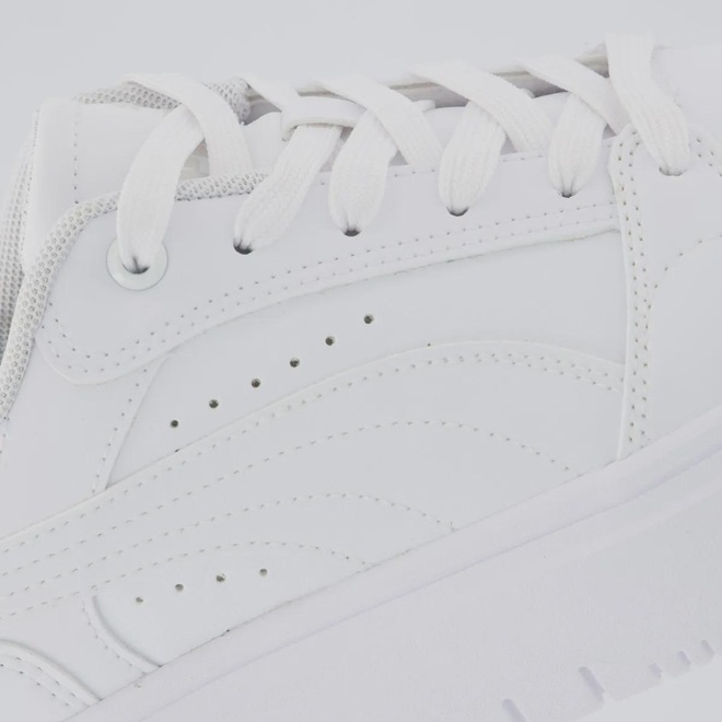 Composição cabedal (parte superior): Material sintético Palmilha: Em EVA e removível; facilita na higienização Forro: Revestimento têxtil com acolchoamento Solado: Borracha antiderrapante, costurado Lingueta: Macia e acolchoada Cor predominante: Branca Altura da Sola: 3 cm Indicado para: Casual Gênero: Feminino Origem: Nacional Ajuste: Cadarço Peso aproximado: 970g o par nº 37