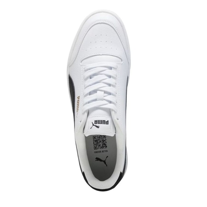 - Cabedal: Couro sintético com detalhe em camurça no calcanhar