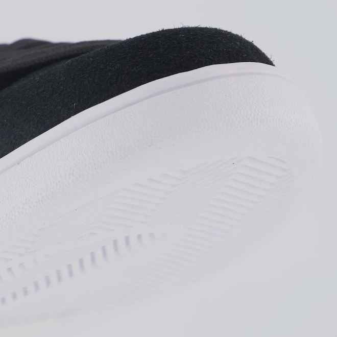 Composição cabedal (parte superior): Confeccionado em suedePalmilha: Feita em EVA e removível; facilita na higienizaçãoForro: Material têxtil com acolchoamento no calcanharLingueta: Macia e acolchoadaSolado: Borracha resistente, coladoAltura da Sola: 3 cmCor predominante: PretoIndicado para: CasualEntressola: BorrachaOrigem: NacionalAjuste: CadarçoPeso aproximado: 700g o par nº 37Possui cadarço extra branco