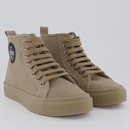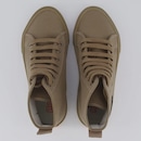 Composição cabedal (parte superior): Material têxtil Solado: Borracha antiderrapante, colado Palmilha: Em EVA; moldada e removível Forro: Material têxtil respirável Lingueta: Fina e flexível Cor predominante: Cáqui Indicado para: Casual Altura da Sola: 4 cm Gênero: Feminino Origem: Nacional Ajuste: Cadarço Cano: Alto de 12 cm Peso aproximado: 690g o par nº 37