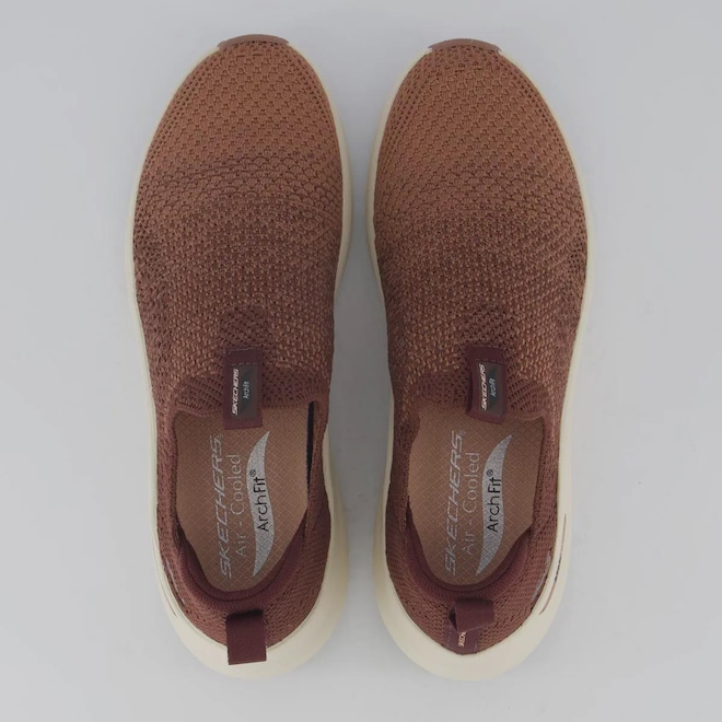 Tecnologias Arch Fit®: Palmilha que molda os pés e reduz impactos. Air Cooled: Sistema que mantém os pés secos e confortáveis. Composição cabedal (parte superior): Produzido em material têxtil Forro: Material têxtil com acolchoamento no calcanhar Palmilha: Em EVA macia e removível Solado: Borracha antiderrapante, colado Altura da Sola: 5 cm Cor predominante: Marrom Indicado para: Caminhada Gênero: Feminino Origem: Nacional Peso aproximado: 470g o par n°37