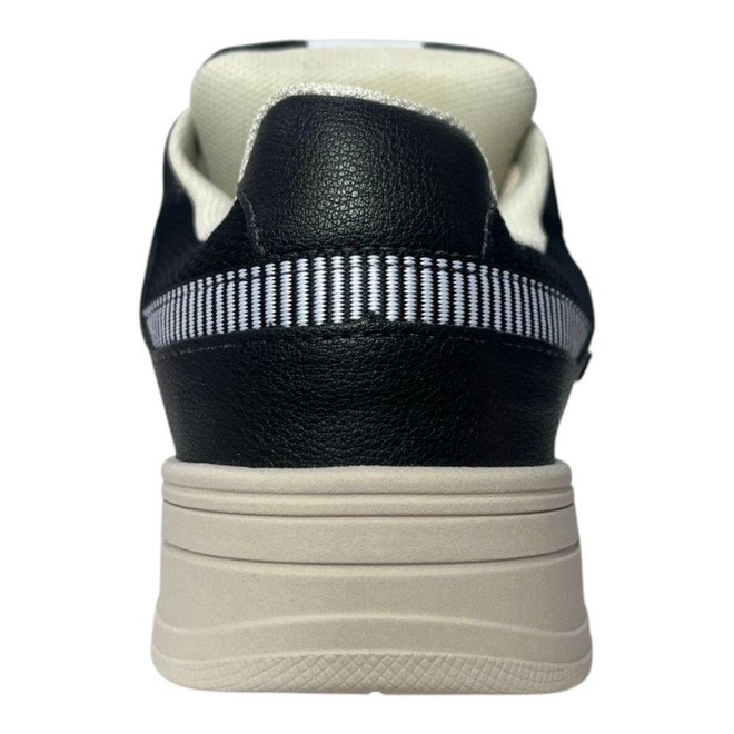 - Materiais: A parte superior (cabedal) é uma mistura couro, material sintético e têxtil, com detalhes em mesh para respirabilidade;