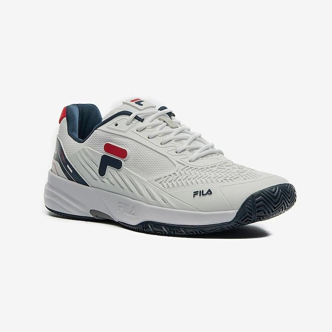 Feito para tenistas de nível básico a intermediário, o Tênis Masculino Fila Acer traz 2 tecnologias: FLEXX CAGE (placas estabilizadoras); e EVER-GRIP (tração em superfícies secas ou molhadas). A peça indicada para quadras rápidas e de saibro possui reforço lateral em TPU, atacadores de alta resistência e palmilha macia em EVA. Drop: 10 mm. Peso (tamanho 41): 350 g.ref: M15CU3