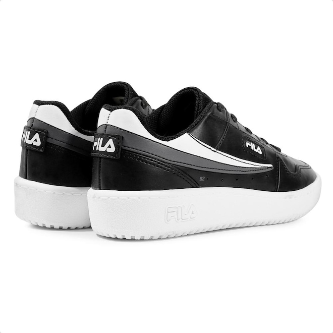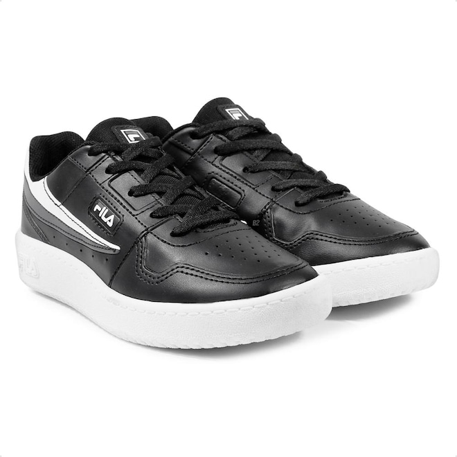 Logo da Fila, ícone da marca, está presente no cabedal, adicionando um toque de estilo e autenticidade.