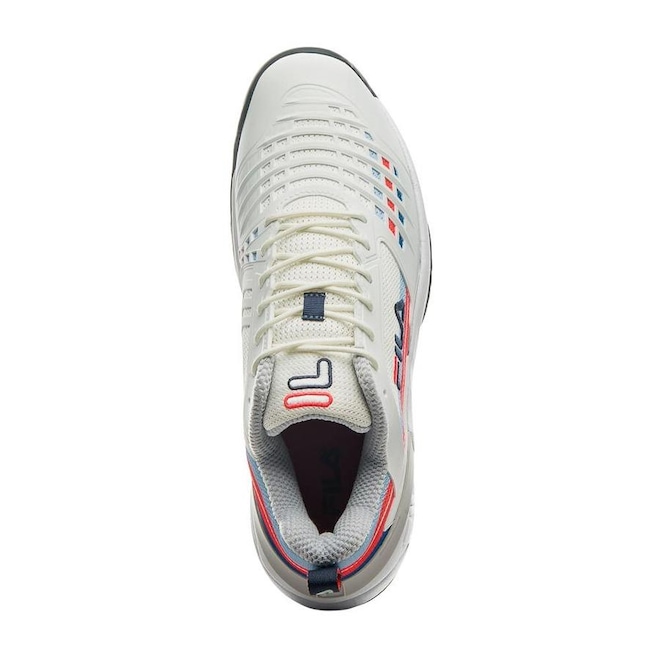 Controle seu jogo dentro das quadras rápidas com o Tênis para Jogar Tennis Masculino Fila Axilus Ace 2.0. O modelo traz 5 tecnologias: FLEXX CAGE (placas estabilizadoras); CAGE ESB (estabilizador de aterrissagem); CAGE AMH (antitorção no mediopé); SUPERFOAM (espuma anatômica que garante máximo conforto); e EVER-GRIP (tração em superfícies secas ou molhadas). Peso (tamanho 41): 420 g. Drop: 9 mm.