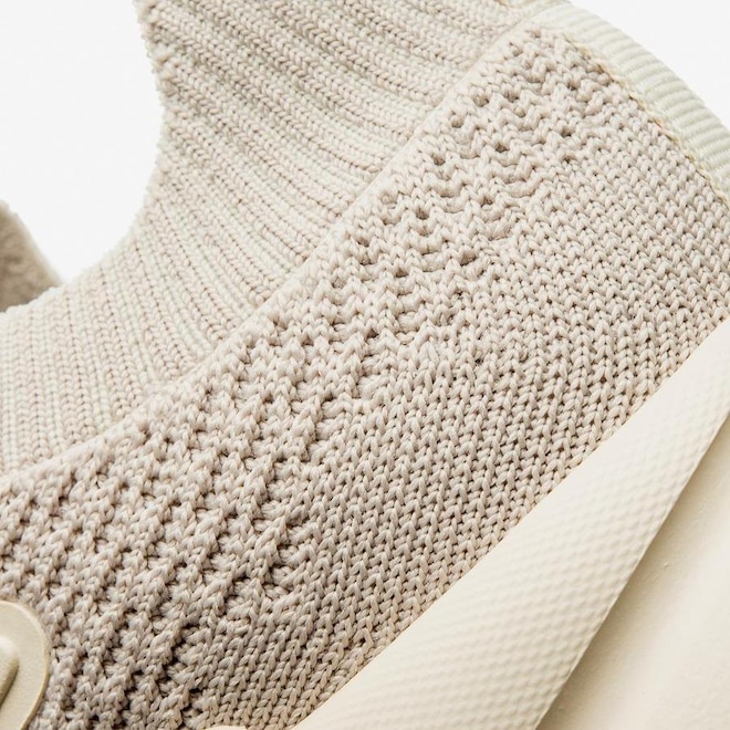 É Slip-On, seu cabedal (parte superior do calçado) tem material em mesh (malha de tramas abertas), sua entressola e solado são em EVA.
