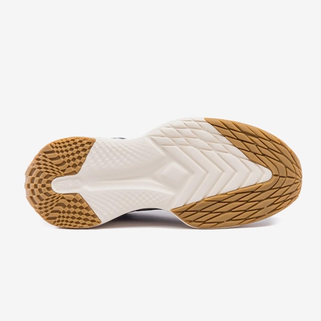 Aderência Estratégica: O solado emborrachado é aplicado estrategicamente nas áreas traseira e frontal, garantindo excelente aderência e durabilidade nas zonas de maior contato e desgaste.