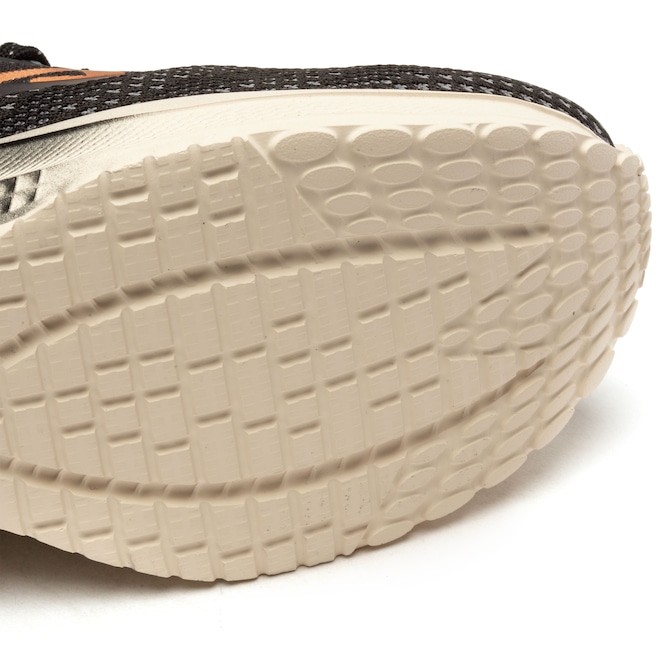 O solado entrega máximo conforto através da tecnologia ENERGIZED RUBBER, que transforma o impacto da pisada em propulsão e oferece função antiderrapante.