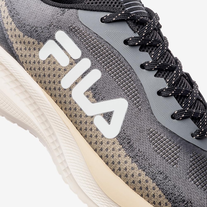Possui acolchoado interno para maior conforto, patches Fila emborrachados no contraforte e palmilha macia em EVA com tecido forrado.