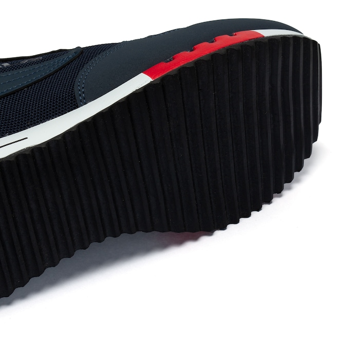 O Fila Euro Jogger garante um look mais esportivo no contexto casual com estrutura em mesh (malha de tramas abertas) e sobreposições em couro para suporte.