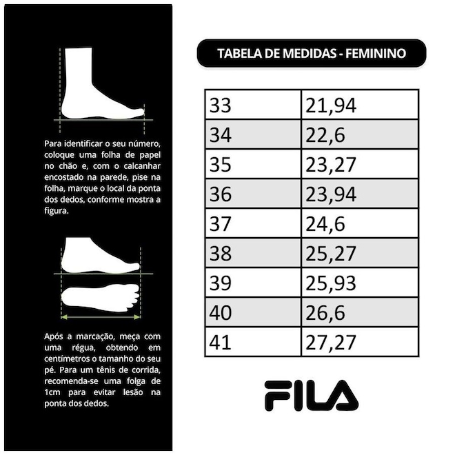 Na esteira ou na rua, aposte no Tênis Fila Feminino para melhorar seu pace e ir mais longe sem perder o conforto. Com um cabedal superconfortável, o modelo traz tramas em mesh que garantem maior respirabilidade entre uma passada e outra. O calcanhar acolchoado garante suporte junto à entressola que proporciona amortecimento e transformando impacto em energia. Para treinos ou corridas de rua garanta já o seu Tênis de Corrida Fila Feminino para atingir seus objetos. Aproveite! Nome: Tênis Fila Recovery Feminino Gênero: Feminino Indicado para: Dia a Dia Categoria: Amortecimento Terreno: Rua ou Esteira Material: Sintético e Têxtil Tecnologia: Energized Rubber, Superfoam Definição da Tecnologia: Energized Rubber: Oferece amortecimento, transformando o impacto em energia para aprimorar os movimentos; Superfoam: Composição do EVA que garante maior memória e resiliência do material, além de ótimo estímulo e resposta ao impacto. Composição: Cabedal: Sintético e Têxtil com tramas em mesh. Calcanhar acolchoado e fecho em cadarço; Entressola: EVA; Solado: Borracha Pisada: Neutra Garantia do Fabricante: Contra defeito de fabricação Origem: Nacional Marca: Filaref: M0LPA7