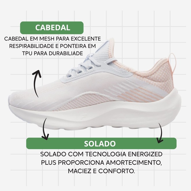 -ENERGIZED PLUS: tecnologia que oferece amortecimento superior e conforto prolongado.