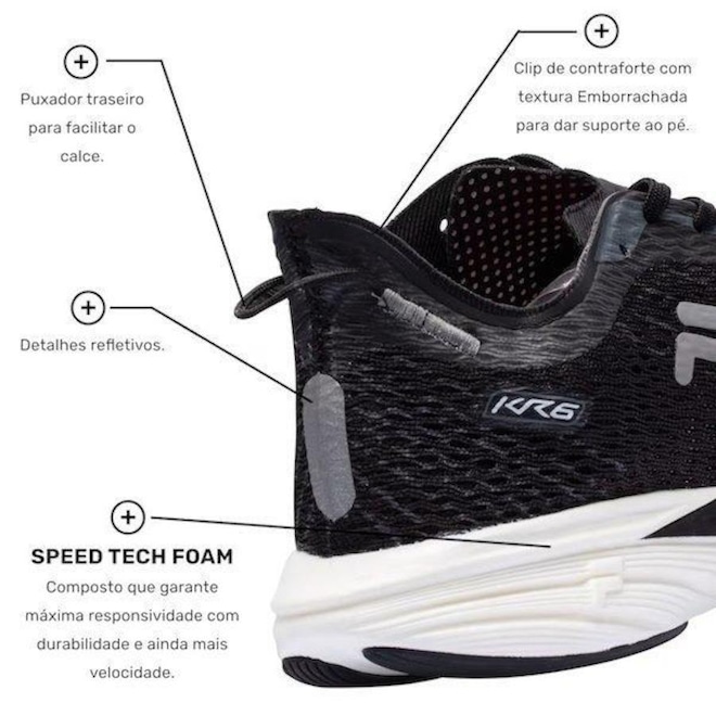 Ideal para provas de 5 km a 10 km e treinos de velocidade: o novo KR6 conta com a inovadora tecnologia SPEED TECH FOAM que entrega maior resiliência e responsividade. O solado na região frontal em EVER-GRIP T garante maior tração com o solo, já a borracha traseira em EVER-GRIP assegura maior durabilidade. Com a tecnologia SKIN TECH no cabedal, em dupla camada de tecidos, o corredor calça praticamente uma segunda pele, desfrutando de maior respirabilidade e estrutura, além de evitar rasgos. Drop: 6 mm. Peso: 162 g (tamanho 40 - peso médio dentro da faixa de variação).ref: M15CS6