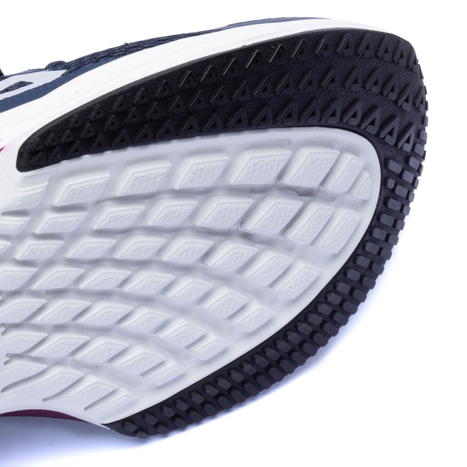 O cabedal é leve e respirável para frescor e comodidade duradoura com suporte acolchoado no contraforte que ajuda a diminuir o desconforto do atrito de contato.