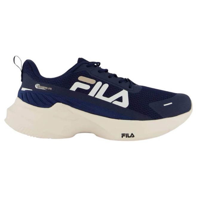 Com inspiração nas linhas e design do modelo original de Running, o Tênis Fila Progress Lite é indicado para treinos diários e caminhadas. Seu visual autêntico e despojado traz o DNA esportivo da FILA e oferece o suporte necessário para a prática de esportes e para a rotina agitada do dia a dia. Cabedal (parte superior do tênis) confeccionado em mesh respirável na base e em tecido frequenciado, com diferentes níveis de enchimento, no contraforte ao mediopé para maior suporte e segurança. Possui acolchoado interno para conforto, puxador traseiro para facilitar o calce e palmilha em EVA forrado. O solado é construído em monobloco de EVA para proporcionar maciez e flexibilidade.