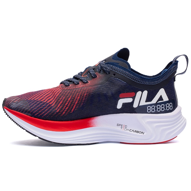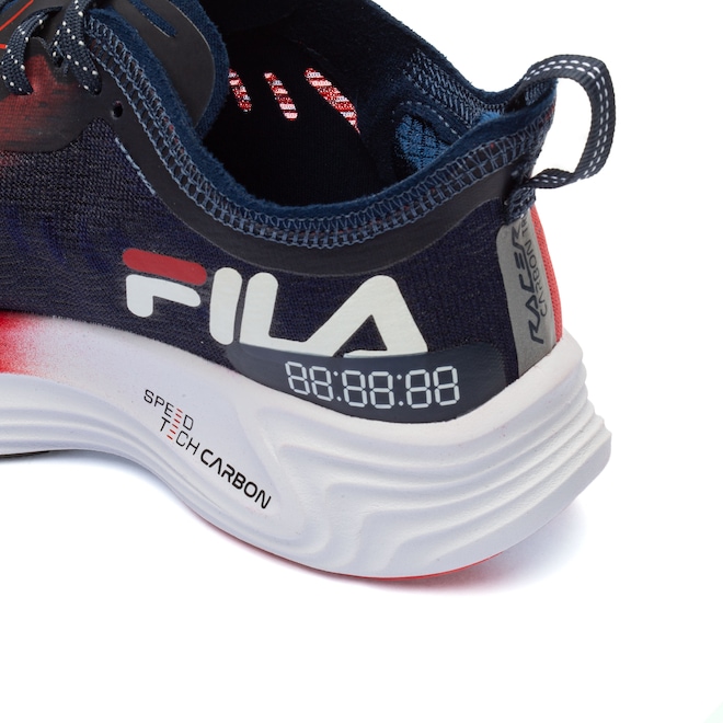 O Tênis Fila Racer Carbon Tri traz a tecnologia SPEED TECH CARBON® e foi criado junto com atletas de alta performance, em especial de triathlon. A peça conta com duas opções de cadarços: um de elástico com sistema de LOCKER, que facilita o ajuste. E outro convencional. O puxador traseiro é mais um diferencial que agiliza o calce na transição das provas. Drop: 6mm. CABEDAL: 90% - TEXTIL 10% - TPU PALMILHA: 90% - EVA 10% - TEXTIL FORRO: 100% - TEXTIL SOLA: 90% - EVA 10% - BORRACHAref: M10ZQX