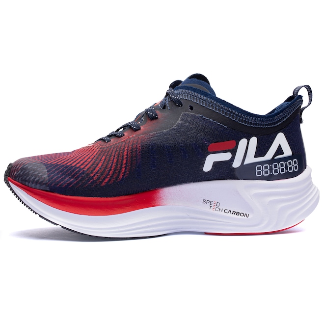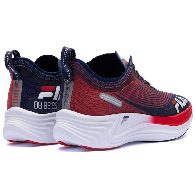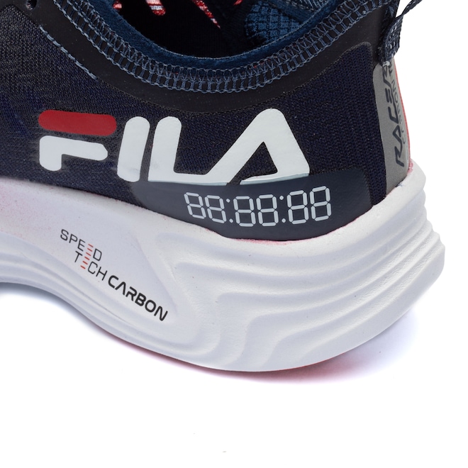 O Fila Racer Carbon Tri conta ainda com contraforte com suporte acolchoado, além de duas versões de ajuste: cadarço tradicional e elástico com locker.