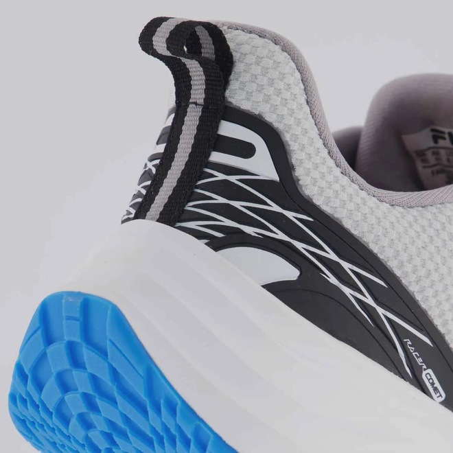 Eleva+: Tecnologia que explora o limite de expansão do EVA para alcançar máxima resposta, proporcionando o efeito trampolim, absorvendo o impacto da passada e transformando essa energia em impulsão.Composição cabedal (parte superior): Material têxtil com partes em sintético