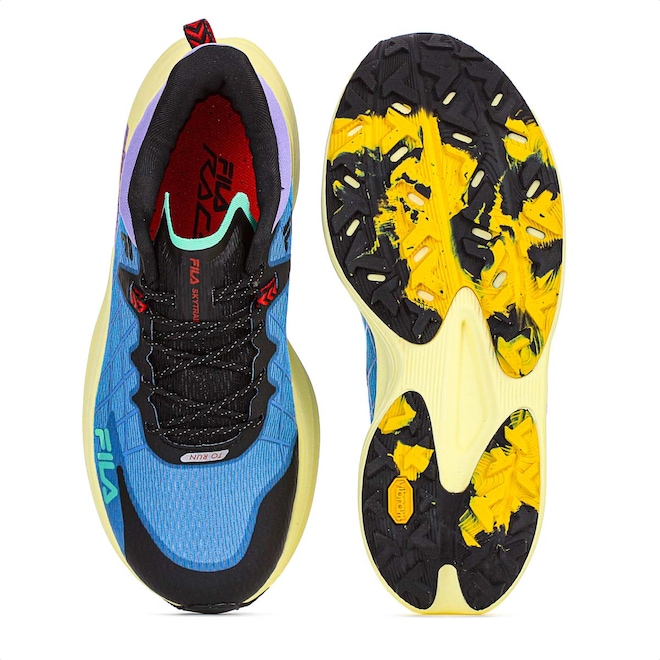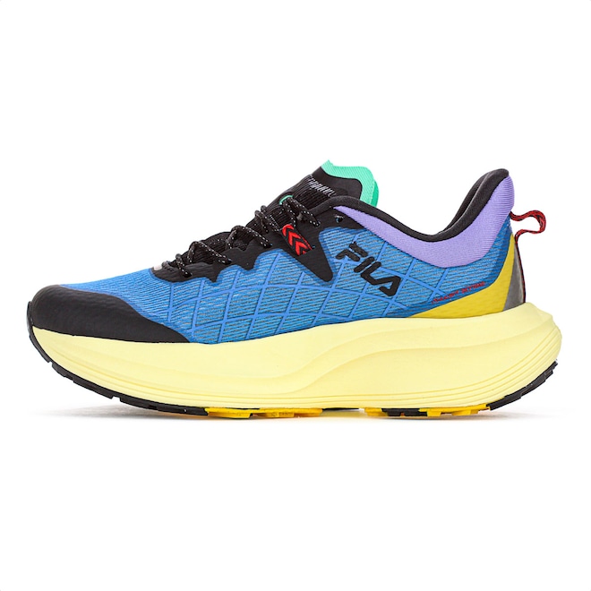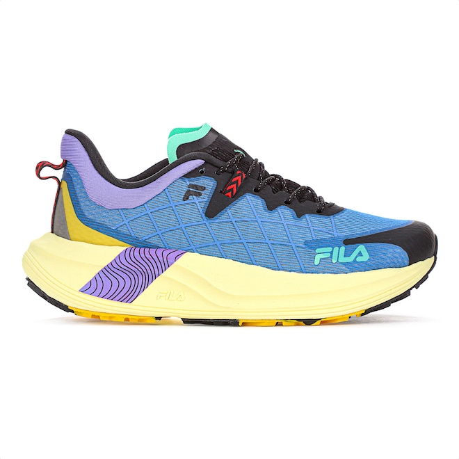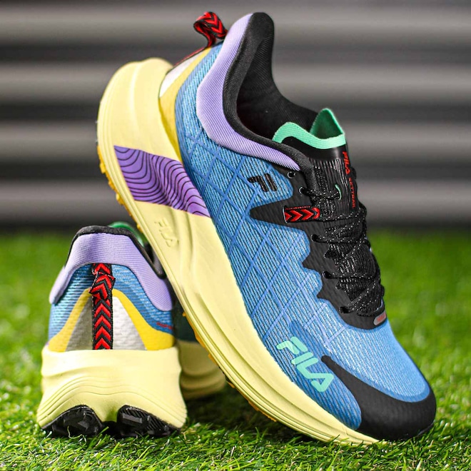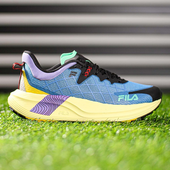 Tênis Fila Racer Skytrail Azul Roxo e Preto - Masculino: Conquiste as trilhas com performance e segurança inigualáveis! Ficha Técnica: Marca: Fila Gênero: Masculino Cor: Azul com detalhes em roxo, preto, amarelo, verde e vermelho Categoria: Running Cabedal: 90% Têxtil e 10% Sintético Palmilha: 90% EVA e 10% Têxtil Forro: 100% Têxtil Sola: 55% EVA e 45% Borracha com tecnologia VIBRAM Fechamento: Cadarço Indicação de uso: Trilha Tecnologia do solado: VIBRAM, alta resistência, durabilidade e eficiência Detalhes adicionais: Colarinho acolchoado, áreas refletivas para segurança peças emborrachadas para maior proteção e logo Fila na lateral do tênis Conteúdo da embalagem: 1 par de Tênis Fila Racer Skytrail Azul Roxo e Preto – Masculino Descubra o primeiro modelo de Trail Run da Fila, feito sob medida para enfrentar terrenos irregulares com alta performance. A tecnologia VIBRAM no solado oferece resistência e tração incomparáveis, enquanto o cabedal robusto combina materiais têxteis e sintéticos para máxima durabilidade. Com áreas refletivas e acolchoamento estratégico, é o calçado ideal para quem busca aventura sem abrir mão de conforto e segurança. Não deixe para depois, conquiste as trilhas com o Fila Racer Skytrail hoje mesmo!