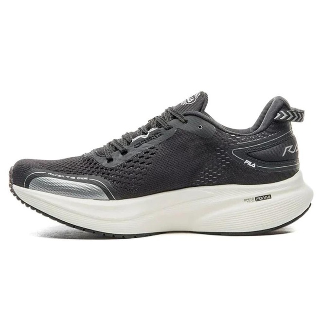 Indicado para treinos e provas de qualquer distância além de Triathlon, o Tênis FILA Racer T2 Xtreme garante máxima potência e propulsão, ideais para ajudar os atletas a evoluírem a sua corrida. Tecnológico e respirável, o modelo traz duas opções de amarração. Possui tecnologia SPEED TECH (placa de nylon com fibra de vidro que entrega propulsão, alto desempenho e economia de energia), entressola com composto SPEED TECH FOAM para alta responsividade e durabilidade e sola EVER-GRIP. E o cabedal de fácil calce e sem costuras internas para evitar atritos, possibilitando o uso sem meias. Cabedal em mesh. - Forro em têxtil. - Entressola Speed Tech Foam com tecnologia Speed Tech. - Solado EVER-GRIP. - Fecho de cadarço. - Forma padrão. PESO: 250g (Tamanho 40). PISADA: Neutra. TECNOLOGIAS:. Speed Tech Foam: Espuma leve que oferece absorção de impacto e retorno de energia efeciente. Speed Tech: Placa de nylon com fibra de vidro que entrega propulsão, alto desempenho e economia de energia. EVER-GRIP: Borracha de alta durabilidade e resistência, criando uma fricção aprimorada com o solo.