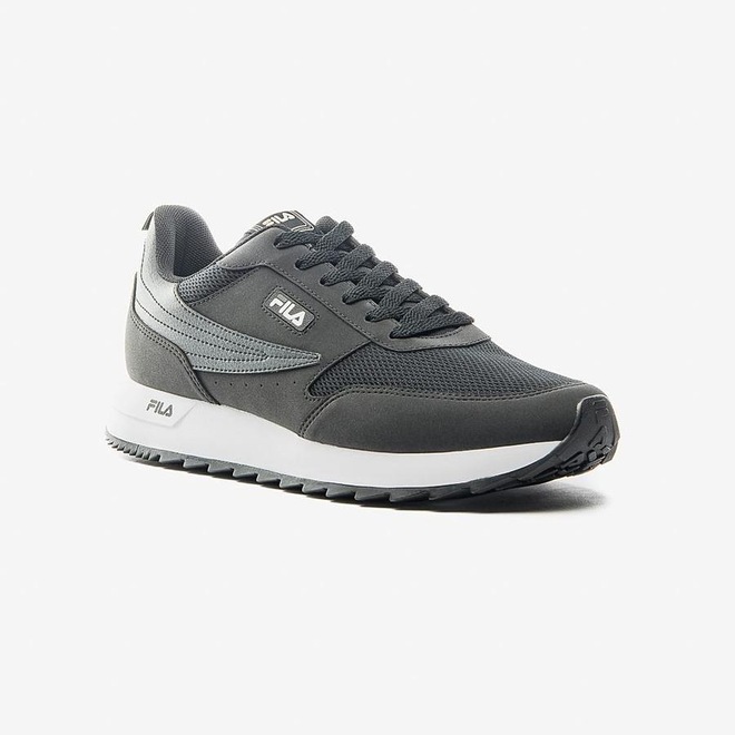 O Tênis Fila Retro Flag apresenta o clássico estilo Retro Running em um design que resgata o DNA esportivo da FILA. Versátil e elegante, ele complementa seu visual streetwear do dia a dia. Cabedal (parte superior do tênis) construído em Mesh e Lix de fácil manutenção e limpeza, que proporcionam conforto e auxiliam a respirabilidade do pé. Possui detalhes pespontados, pontos perfurados estrategicamente posicionados nas áreas necessárias, flag lateral estilizada e logos Fila Letter que adicionam autenticidade ao tênis. O solado traz entressola em EVA standart, que oferece conforto e estabilidade, com sola emborrachada para maior aderência ao solo. ,,GRAFITE