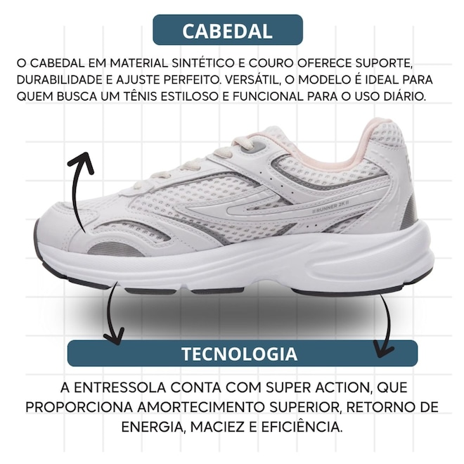 - SUPER ACTION: Oferece amortecimento superior, retorno de energia, maciez e eficiência