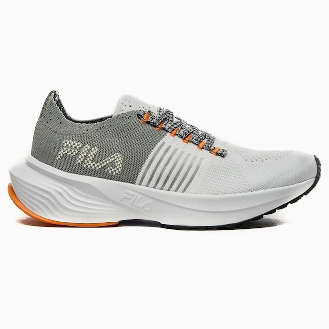 O Tênis Fila Spider Knit segue um design esportivo e versátil com detalhes estéticos que remetem a um visual mais lifestyle e combinam com qualquer ocasião. Seu solado tecnológico traz atributos dos modelos de Running para maior conforto durante as práticas esportivas ou para o uso diário. Cabedal (parte superior do calçado) confeccionado em Knit com blocos de monofilamento que exibe transparência na região do mediopé para proporcionar mais respirabilidade. Possui lingueta com fechamento assimétrico e puxador traseiro que facilitam o calce, forro interno com tecido reciclado e com toque macio, lateral vazada, stripes respiráveis, atacador estilizado com ilhoses e fita, assinatura Fila Letter com efeito grid aplicada na lateral e palmilha em EVA com forração de tecido. A entressola em EVA conta com a tecnologia de amortecimento e absorção de impacto ULTRAFOAM (espuma que combina maciez e alto retorno de energia, resultando em uma aterrissagem mais suave). O solado vem com borracha aplicada na parte frontal e traseira, que oferece tração e durabilidade.