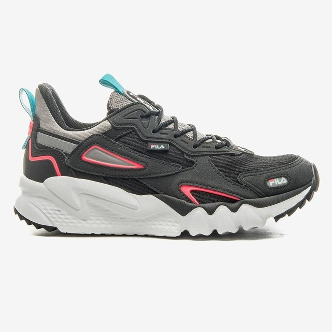 O Tênis Fila Venture Tracer surge da estética retrô do streetwear da FILA inspirada nos anos 90 com a personalidade do modelo clássico Ray Tracer. Seu design ousado, moderno e irreverente traz a essência trail para o lifestyle urbano com movimento, texturas e cores fortes e contrastantes. Modelo estilo Chunky, cabedal (parte superior do tênis) construído em Mesh duplo respirável, com sobreposição de peças contrastantes em material sintético e microfibra, valorizando as diferentes texturas. Possui mini flag na lateral, detalhe futurista na amarração do atacador e puxador de alta resistência na parte traseira que auxilia o calce, além de trazer autenticidade para a peça. Sua sola robusta e super macia possui tecnologia ENERGIZED RUBBER (composto de EVA com densidade média e toque emborrachado), que transforma o impacto da pisada em propulsão, garantindo o grip superior quando em contato com o solo. A soleta em TPU proporciona maior flexibilidade. PRETO,CINZA,ROSA