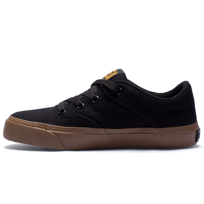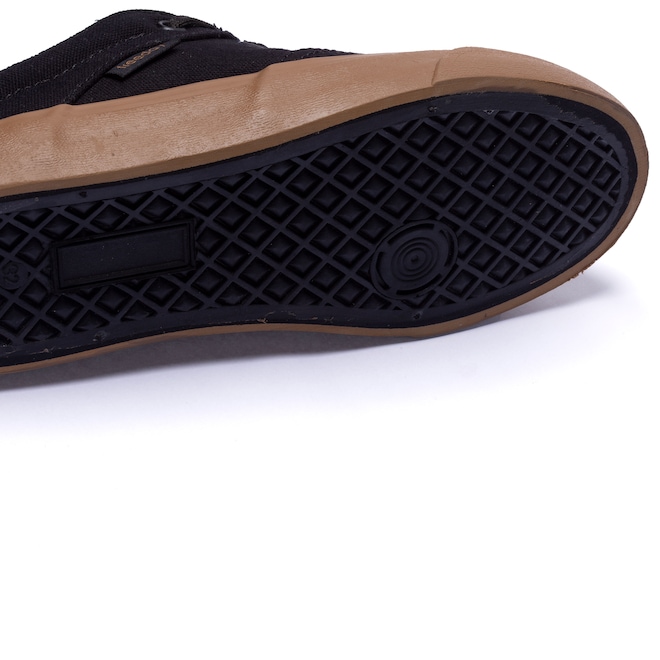 Seu cabedal (parte superior do calçado) em lona (100% algodão), com entressola emborrachada e solado borracha vulcanizada e ponto de giro.