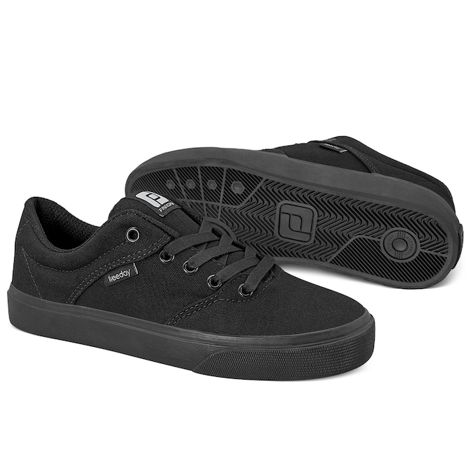 O Tênis Freeday Flip Eco | Preto é a escolha ideal para quem busca um visual autêntico, conforto para o dia a dia e uma pegada consciente. Feito em material sintético de alta qualidade, é leve, respirável e resistente, acompanhando você em rolês de skate, encontros com os amigos ou na rotina urbana. Seu design minimalista valoriza linhas retas, cores neutras e o icônico logo Freeday na lateral, garantindo originalidade com discrição.