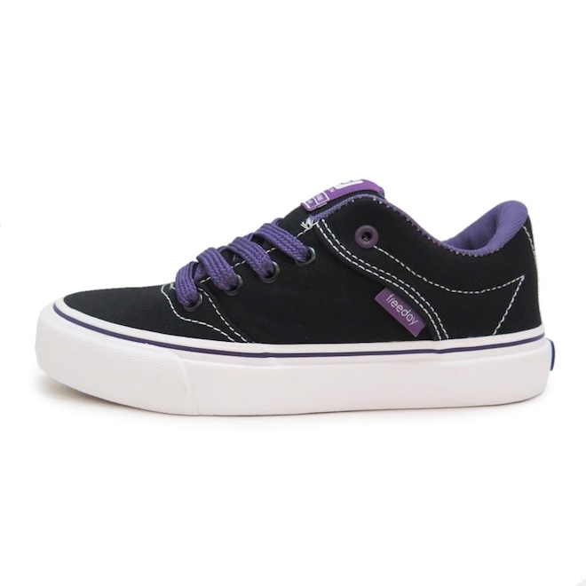Cabedal reforçado em lona;Reforço de espuma na língua e no forro;ID Freeday em tag na lingueta e lateral;Sola