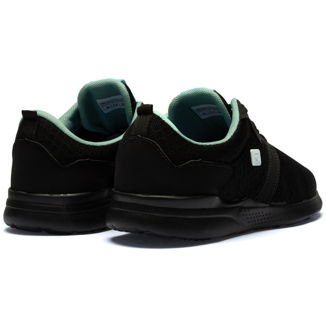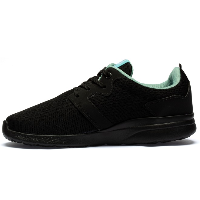 O cabedal (parte superior do tênis) é respirável em mesh (malha em tramas abertas) com entressola e solado em EVA para leve e duradouro amortecimento.