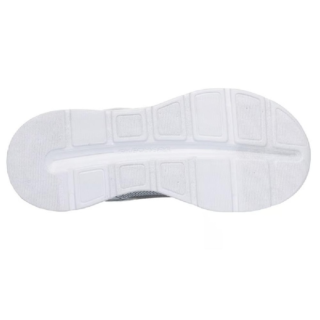 Este modelo conta com fecho adaptável da Skechers, parte superior em malha e material sintético, atacadores elásticos fixos e tira ajustável no peito do pé, facilitando o calce. Muito prático para colocar e tirar.